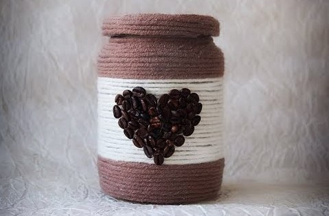 Возьмите любую баночку или чашку. Обильно смазав ее клеем, по кругу обмотайте ее шерстяными нитями. Когда конструкция высохнет, можно будет сверху скрепить аппликацию из цветочков или сердечек. Вставьте цветы в вазу и вручите подарок улыбающейся маме!