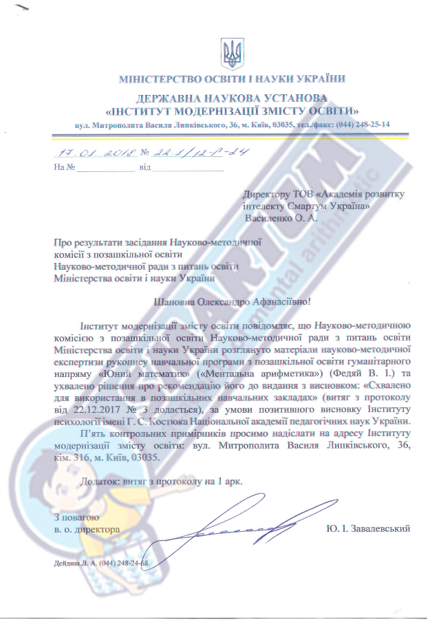Министерство образования и науки Украины одобрило методику «Ментальная арифметика» от SMARTUM