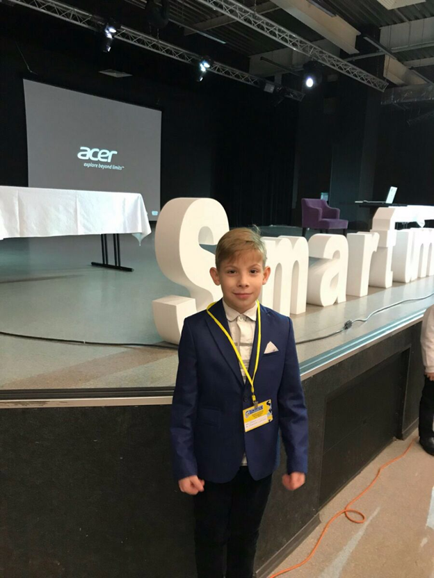 Школяр виступав першим у конкурсі «Smartum-Цезар» з теми «Брати» (1-цифрові, 1 сек., 30 дій в одному прикладі), він розповідав вірш і збирав пірамідки Рубіка.