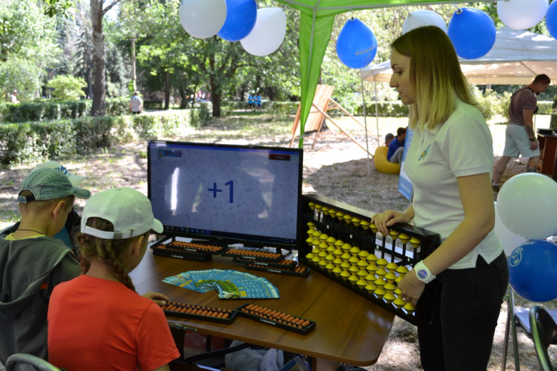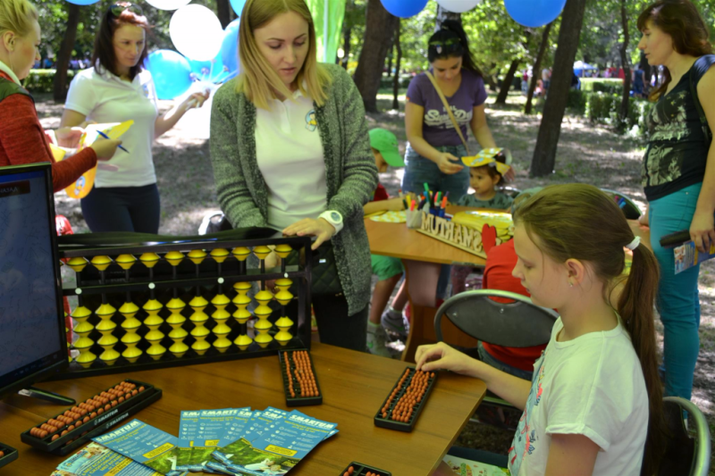 В рамках мероприятия тренеры центра «Академии развития интеллекта SMARTUM Украина» в Запорожье провели мастер-классы по ментальной арифметике и показали зрителям способности учеников академии SMARTUM.