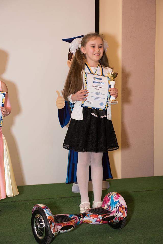 Главный приз Олимпиады - гироборд последнего поколения с 10-дюймовыми колесами, смарт-системой балансировки, приложением для смартфона, LED фарами и встроенными динамиками – заслуженно получила ученица «Академии развития интеллекта SMARTUM Украина» в Краматорске Анна Шевченко.