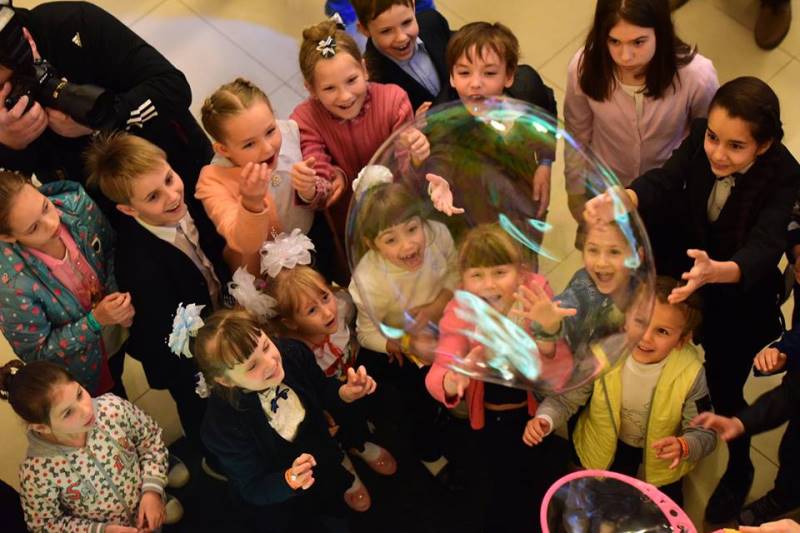 В перерывах между заданиями Олимпиады, творческими номерами, детей развлекали аниматоры, представившие «Научные шоу», «Шоу мыльных пузырей», организовавшие забавные конкурсы и эстафеты.
