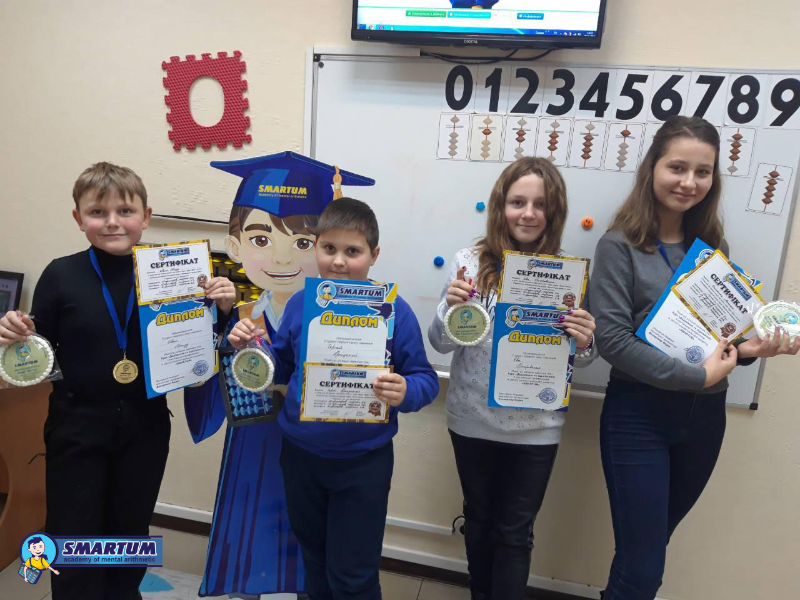 В Центре «Академии развития интеллекта SMARTUM Украина» в Запорожье завершено еще один курс по ментальной арифметике, «Сложение и вычитание» и уровень «Друзья». Упорные тренировки равно отличный результат. Поздравляем выпускников и желаем новых успехов со SMARTUM!